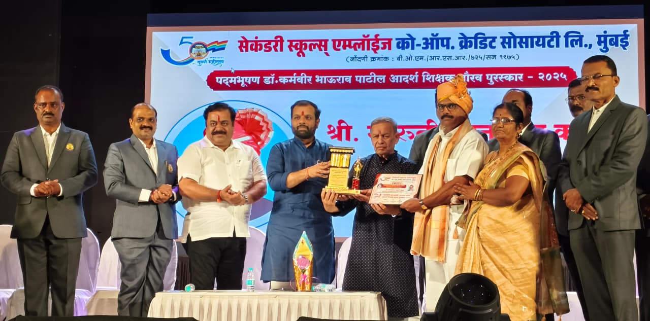 सांगली जिल्हा मुख्याध्यापक संघाचे नूतन अध्यक्ष, आदर्श प्रशाला नागजचे मुख्याध्यापक व आमचे मार्गदर्शक श्री. संजयकुमार झांबरे सर यांना शनिवार दिनांक 1 नोव्हेंबर 2025 रोजी मुंबई येथील,आशिया खंडातील सर्वात मोठी असलेली माध्यमिक शिक्षकांची पतसंस्था,सेकंडरी एम्प्लॉईज को-ऑपरेटिव्ह क्रेडिट सोसायटी च्या सुवर्ण महोत्सवी वर्षाच्या निमित्ताने, पद्मभूषण डॉ. कर्मवीर भाऊराव पाटील आदर्श मुख्याध्यापक पुरस्कार प्रदान करणेत आला . यावेळी पुरंदर -हवेली चे मा. आमदार श्री .संजय जगताप साहेब , विधान परिषदेचे सदस्य आमदार श्री. विक्रम पाटील सर, सहकार भारतीचे संस्थापक सदस्य ,भारतीय रिझर्व बँकेचे सल्लागार सदस्य श्री . सतिश मराठे साहेब, आमदार श्रीकांत भारतीय,आणि सेकंडरी क्रेडिट सोसायटीचे चेअरमन डॉ.श्री चंद्रकांत पाटील सर व सर्व संचालक व राज्यभरातून आलेले सभासद मोठ्या संख्येने उपस्थित होते . हा पुरस्कार सोहळा मुंबई येथील महाकवी कालिदास नाट्य मंदिरामध्ये मोठ्या उत्साहात संपन्न झाला.
