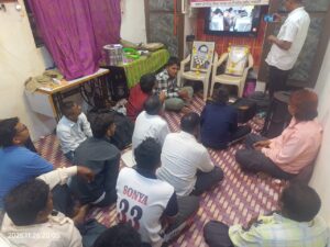 याच दरम्यान उपस्थित सर्वांना संविधान चित्रफित दाखविण्यात आली.यावेळी संविधानाचे महत्त्व,त्याची आवश्यकता आणि गरज यावर सखोल चर्चा घडून आली.कार्यक्रमाचे सूत्रसंचालन श्री. संदीप कांबळे सर यांनी केले.आभार श्री. तायाप्पा कांबळे यांनी मानले.या कार्यक्रमासाठी सामाजिक कार्यकर्ते जयवंत वायदंडे,सिद्धांत सुपल, उदय कांबळे, सामाजिक कार्यकर्ते तायाप्पा कांबळे,कोंडीबा कांबळे,विजय कांबळे रोजगार सेवक,संदीप कांबळे सर, पांडुरंग वैराट,आदित्य पाटील,नुपूर वायदंडे, राजवैष्णवी वायदंडे राजवर्धन वायदंडे, नितीन कांबळे,अमित कांबळे,शिवाजी वायदंडे नेताजी वायदंडे,रवी वायदंडे,हर्षवर्धन कांबळे,विघ्नेश कांबळे आणि ग्रामस्थ उपस्थित होते.