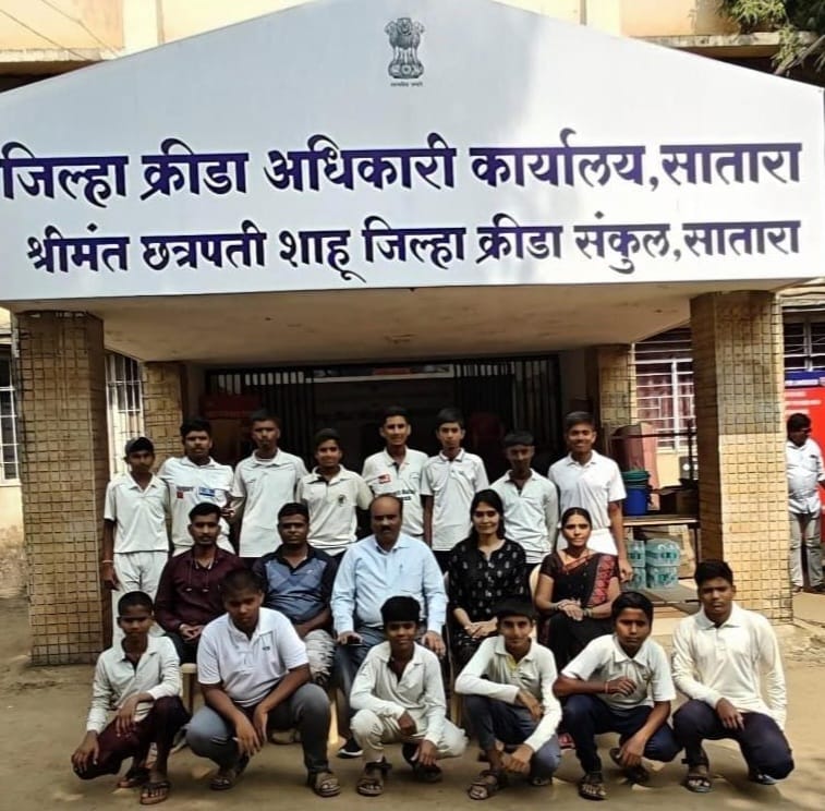 सातारा: येथे झालेल्या १७ वर्षाखालील मुले विभागीय स्पर्धेत उपविजेतेपद मिळालेल्या संघासोबत जिल्हा क्रिडाधिकारी नितीन तारळकर, क्रिडाधिकारी स्नेहल शेळके, विद्यालयाचे प्रशिक्षक रोहीत डंबे, ए. वाय. पाटील, माने आदी.