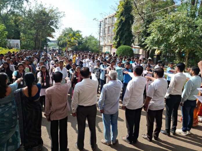 . कार्यक्रमाचे आयोजन मा. प्राचार्य विठ्ठल शिवनकर यांच्या मार्गदर्शनाखाली रा.से.यो समन्वयक प्रा. डॉ. प्रवीण बाबर यांनी केले. सदर कार्यक्रमाचे प्रास्ताविक कार्यक्रम अधिकारी प्रा डॉ प्रवीण बाबर यांनी केले तर प्रतिज्ञा वाचन कनिष्ठ विभागाचे कार्यक्रम अधिकारी प्रा दिलीप जाधव यांनी केले. यावेळी ज्युनिअर विभागाचे पर्यवेक्षक एस ए सावंत, एस एन सावंत,ए पी साळुंखे, ए पी वानकर, एस टी कदम, एन जी गुडघे सौ एस एस मोहिते,मुजमुले आर के,सौ बनसोडे एस ए. यावेळी वाणिज्य विभागाच्या उपप्राचार्य राणी किर्दत, कार्यक्रम अधिकारी प्रा.संकेत राठोड प्रा. सौ. रंजना बागल तसेच महाविद्यालयातील राष्ट्रीय सेवा योजनेतील सर्व समिती सदस्य व प्रा. मोहसीन आत्तार प्रा. अमोल पवार, प्रा.विश्वजीत डुबल, प्राध्यापिका दिव्या टीकोळे, श्री.सुभाष मेटकरी तसेच राष्ट्रीय सेवा योजनेचे स्वयंसेवक विद्यार्थी व विद्यार्थिनी मोठ्या संख्येने उपस्थित होते.