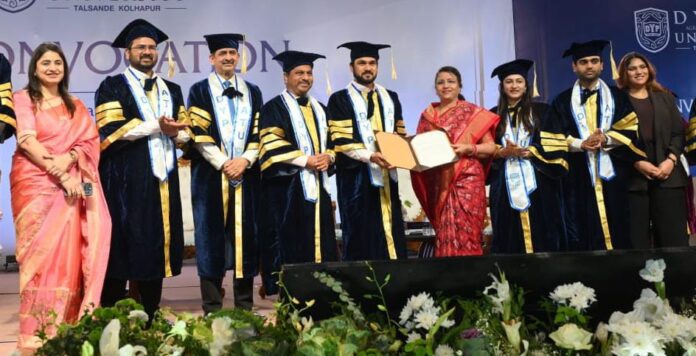 तळसंदे: ऋतुराज पाटील यांन प्र कुलपतीपदी नियुक्तीचे प्रमाणपत्र देताना कुलपती डाॅ. संजय पाटील. शेजारी वैजयंती पाटील, संजय किर्लोसकर, पुजा पाटील, वृषाली पृथ्वीराज पाटील, देवश्री पाटील, तेजस पाटील, डॉ. अनिलकुमार गुप्ता, डॉ. जे. ए. खोत विलास शिंदे, भावित नाईक आदी.