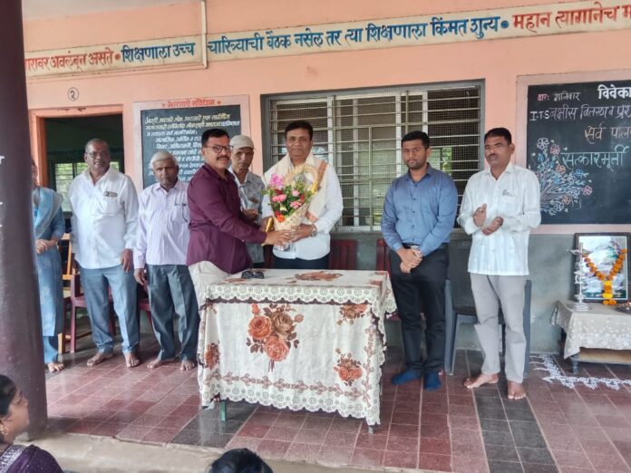 सातवे येथे विवेकानंद विद्या मंदिरमध्ये आयोजित पालक मेळाव्यानिमित्त समुपदेशक अशोक भोईटे यांचा सत्कार करताना सचिव दादा जाधव व इतर मान्यवर.