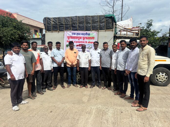 निलेवाडीतून धाराशिव पूरग्रस्तांसाठी अन्नधान्य व वस्त्रांची मदत रवाना